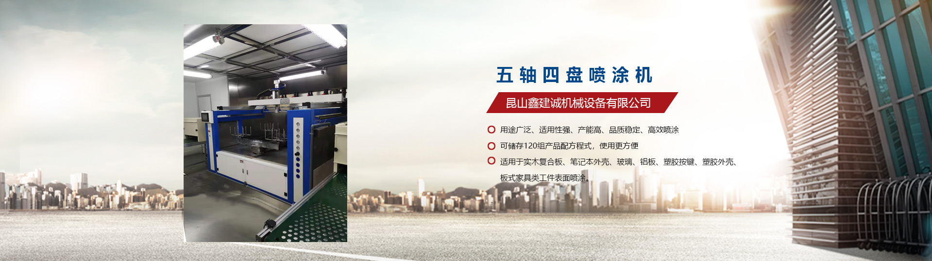 昆山鑫建誠(chéng)機(jī)械設(shè)備有限公司自2009年涉足于自動(dòng)噴漆機(jī)設(shè)備行業(yè),是一家專(zhuān)業(yè)生產(chǎn)噴涂自動(dòng)化設(shè)備的生產(chǎn)廠(chǎng)家,先后推出了平面往復(fù)式自動(dòng)噴漆機(jī):?jiǎn)屋S至五軸自動(dòng)噴漆機(jī)、立式往復(fù)升降機(jī)等。陸續(xù)推出了六軸/七軸/八軸/九軸往復(fù)機(jī)等自動(dòng)噴漆機(jī)專(zhuān)用機(jī)械手,應(yīng)用到具有弧型且表面復(fù)雜的產(chǎn)品噴涂,昆山鑫建誠(chéng)機(jī)械設(shè)備有限公司推出的往復(fù)機(jī)廣泛應(yīng)用于塑膠、五金、木器、裝飾建材、汽車(chē)摩托車(chē)配件等領(lǐng)域。我們秉承“專(zhuān)業(yè),專(zhuān)注,誠(chéng)信,互利”的原則,積極引入臺(tái)灣技術(shù),充分發(fā)揮公司多位高級(jí)機(jī)械結(jié)構(gòu)工程師、自動(dòng)化工程師以及自動(dòng)噴漆機(jī)系統(tǒng)工程